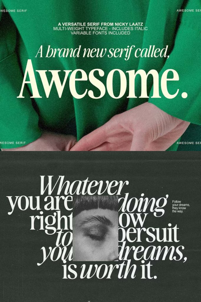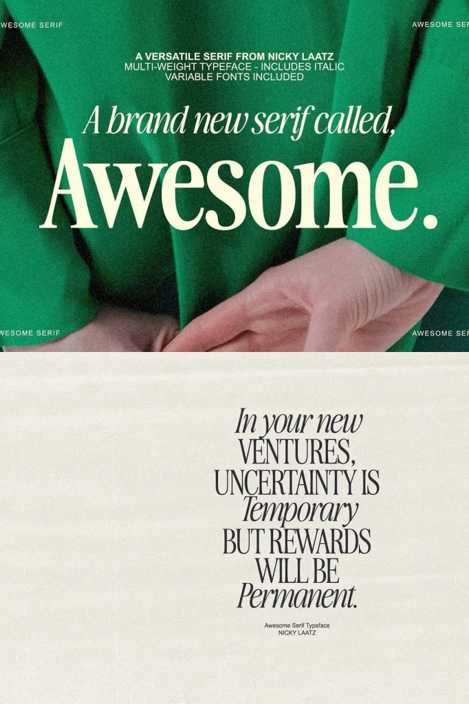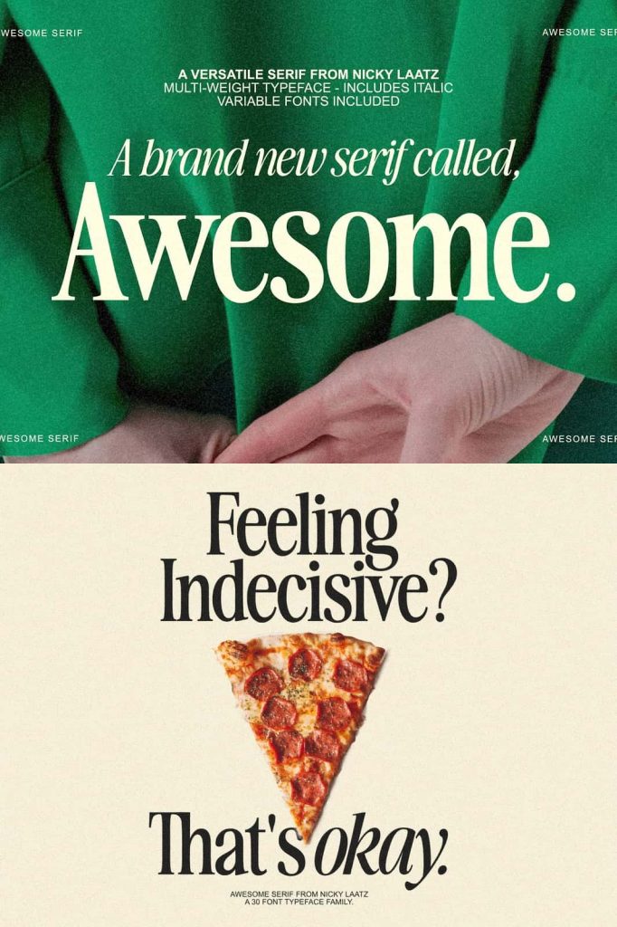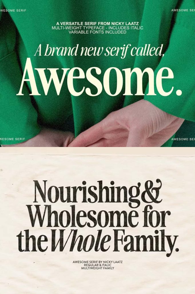 Instead of switching between multiple fonts, designers can depend on Awesome Serif to deliver consistent and impactful results.