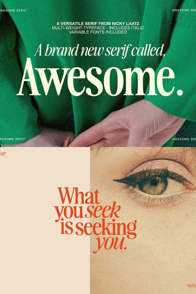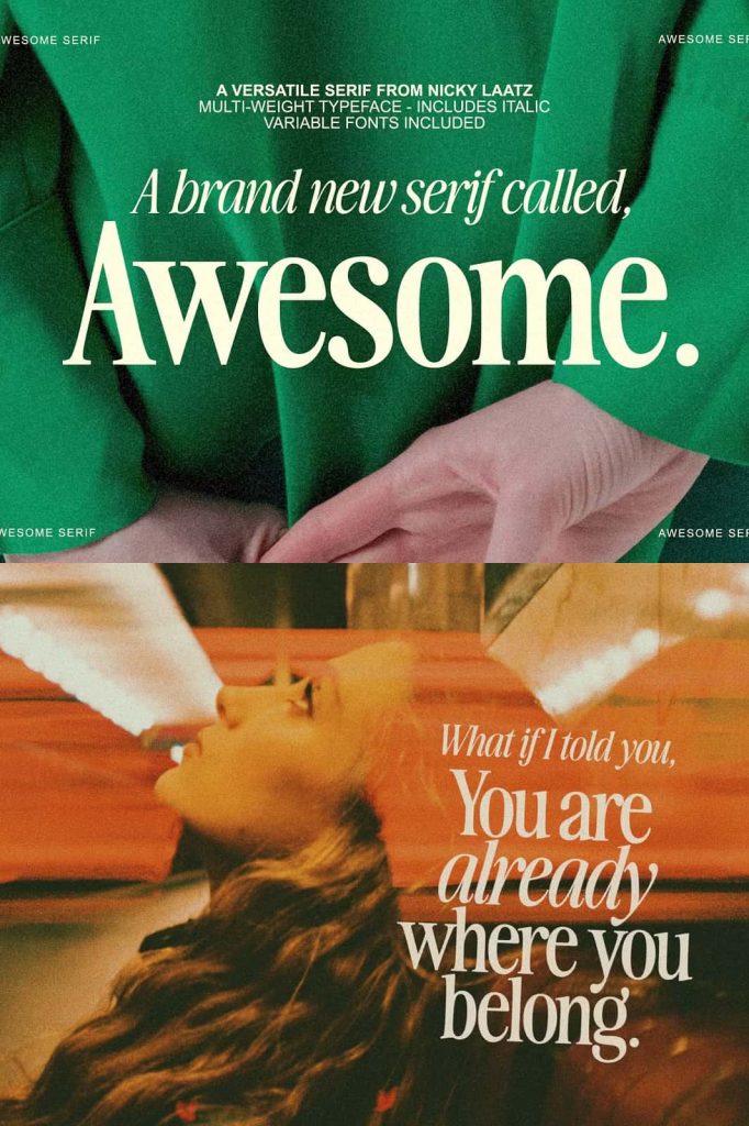 Awesome Serif is more than just a stylish font—it is a powerful design tool that adapts to your creative needs. Its ability to shift between delicate sophistication and bold retro expression makes it an essential choice for designers who value flexibility and impact. By incorporating Awesome Serif into your projects, you can create designs that not only look visually appealing but also communicate a strong and memorable message.