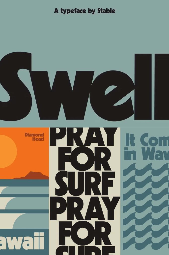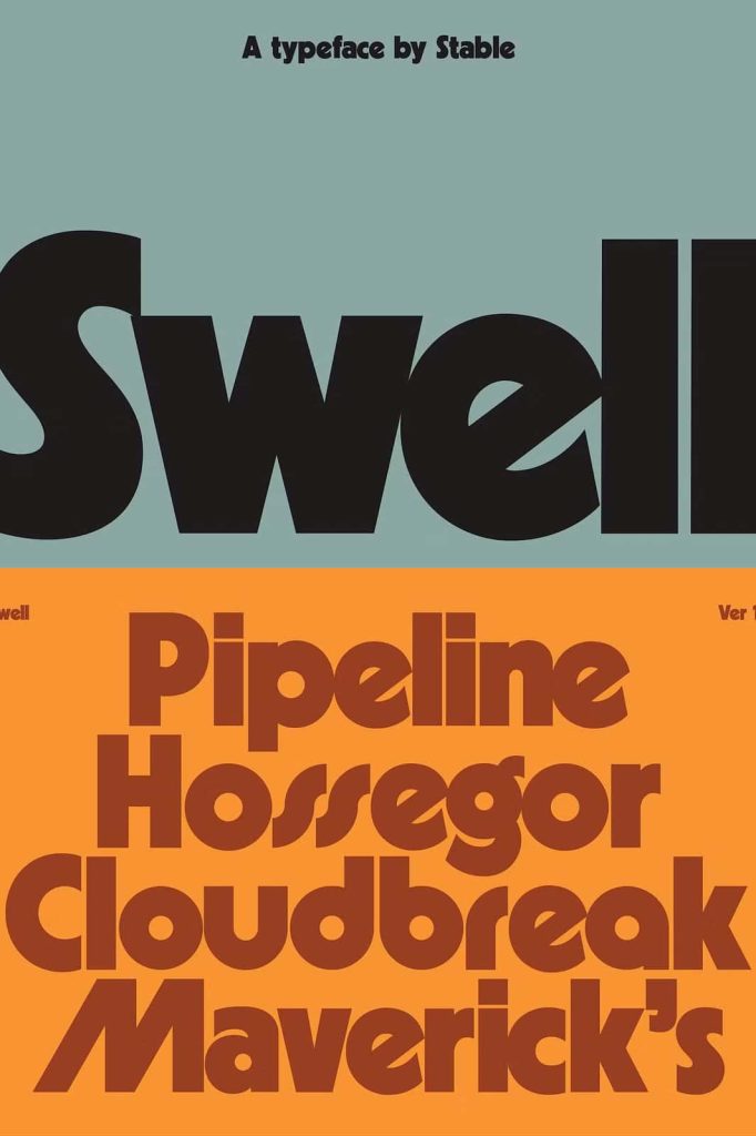 Swell uses bold strokes and precise curves to establish a commanding presence. Designers can rely on this strength to create headlines and logos that immediately capture attention.