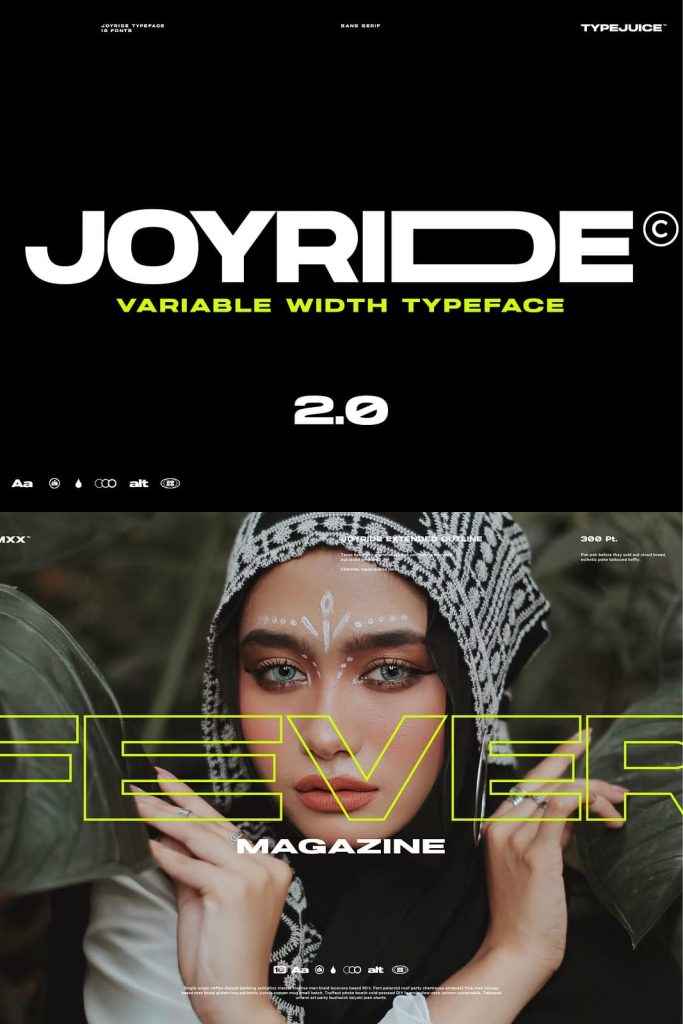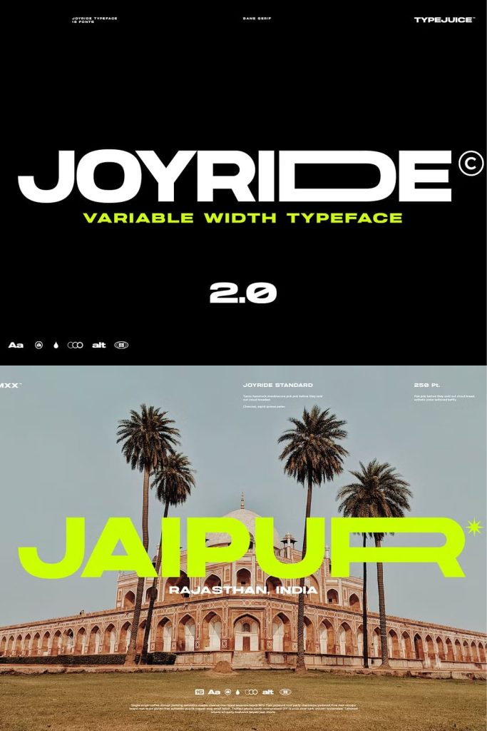 Joyride works exceptionally well in headlines, where its adjustable widths and bold styles create strong visual impact. Designers can use it to craft eye-catching titles that immediately draw attention.