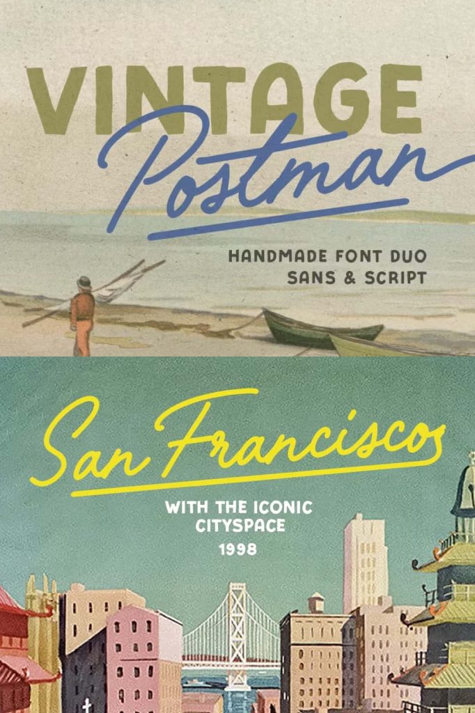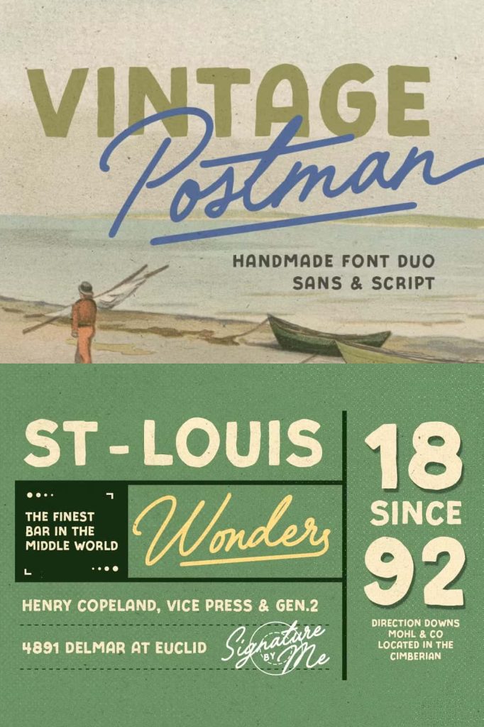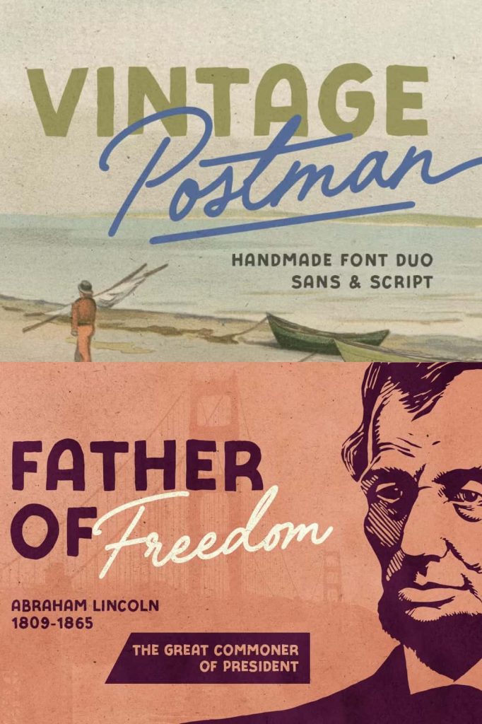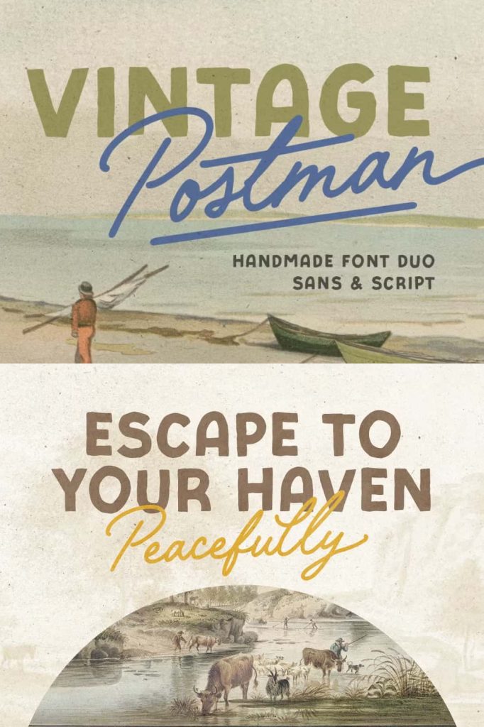 Vintage Postman Handmade Font Duo: Retro Style with Bold Character and Script Elegance