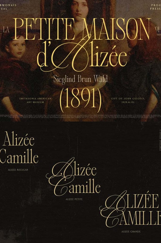 The font’s aesthetic reflects a time when design emphasized craftsmanship and detail. By incorporating these elements, Alizée brings a sense of authenticity and depth to modern compositions.